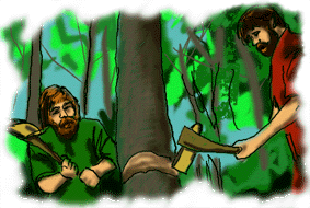 The boats were made from oak and alder trees. These trees once covered the banks of the river. The people from the village would have cut the trees down using axes made from bronze. The trees would then have been split into planks by hammering wooden wedges into the trunks.